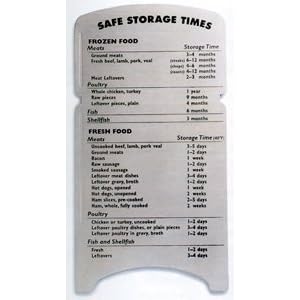 - Quick reference magnet provides safe storage times for chicken, fish and meats