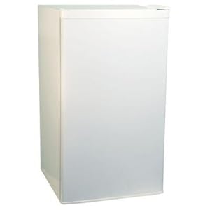 Haier America's compact refrigerator freezer uses true-freezer compartment that can get as cold as full-sized units. Stores perishables comfortably in the fridge compartment. 3.2-cubic feet, gallon door bin accommodates tall bottles-full width freezer compartment-2 dispense a can storage compartments-2 full width interior glass shelves. Reversible door - adjustable thermostat-space saving flat back design.