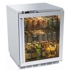 Perlick HP24RO-4L 5.3 Cu. Ft. Capacity Compact Refrigerator - Custom Overlay Glass Door / Stainless Steel Cabinet. HP24RO-4L. Outdoor Compact Refrigerators. When it comes to refrigeration, nothing combines form and function quite like this Perlick Outdoor Refrigerator with Overlay Glass Door. These refrigerated compartments provide unrivaled temperature uniformity and style. Their interiors are clad in shimmering stainless steel, for great looks and performance. The Perlick refrigerator features an array of exclusives and patented features including vinyl-coated, full-extension shelves, complete with guard rails to prevent spills; digital electronic control, Variable Speed Compressor, and Energy Star qualified refrigeration. Dimensions: (34. 25 inches H, 23. 88 inches W, 24. 25 inches D).