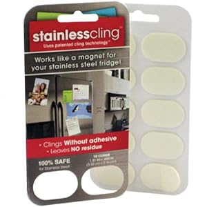 - 10-pack of stainless clings; stick anything to your stainless steel refrigerator